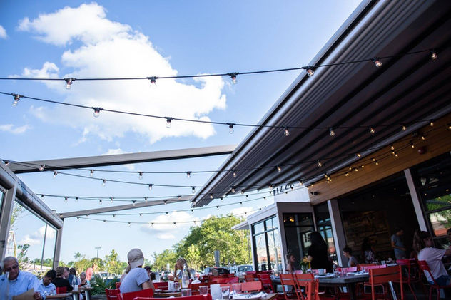 KEPLAN is a durable, aluminum pergola with a retractable roof. The waterproof PVC fabric folds neatly as the roof slides back to reveal open sky above. Available in freestanding (4 posts) and wall-mounted (2 posts). Dimmable LED lighting is available to create a welcoming environment anytime, day or night.
